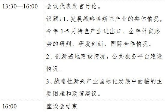 為深入實施科技興貿戰略,分析研究戰略性新興產業國際化發展形勢和面臨的困難,了解行業當前基本情況,推動戰略性新興產業國際化發展,發揮國家科技興貿創新基地在促進創新、產業集聚和對外合作中的示范帶動作用,商務部產業司和科技部火炬中心將于近期分領域召開戰略性新興產業國際化發展形勢分析會,現將第二次會議相關事項通知如下: