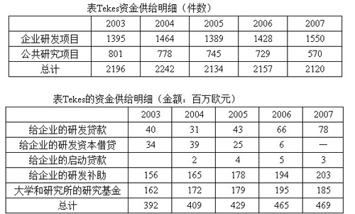 2007年,Tekes資助了2120個項目??偨痤~達到4億6900萬歐元。