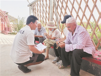 图⑤ 在石河子大学农学院绿洲农业信息技术与智慧农业团队担任科研助理的陈翔宇参加三下乡社会实践。