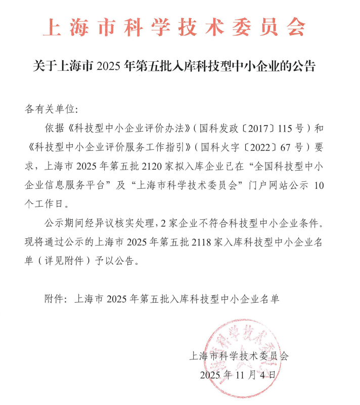 上海市2025年第5批入庫科技型中小企業名單公告正文.jpg PICTURE