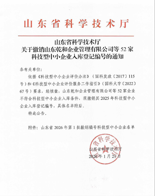 山東省2026年第1批撤銷編號科技型中小企業名單.pdf FILE