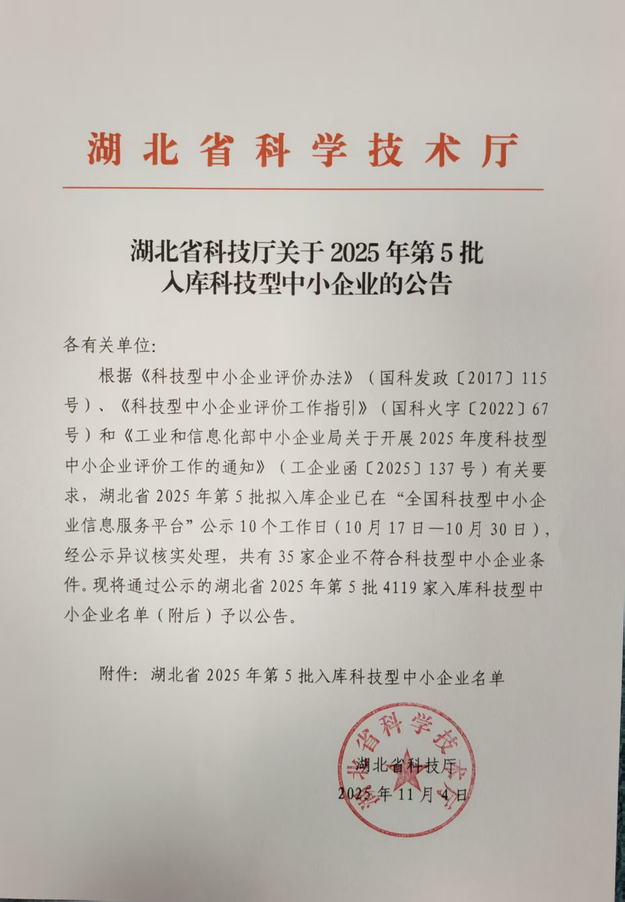 湖北省2025年第5批入庫科技型中小企業名單公告正文.jpg PICTURE