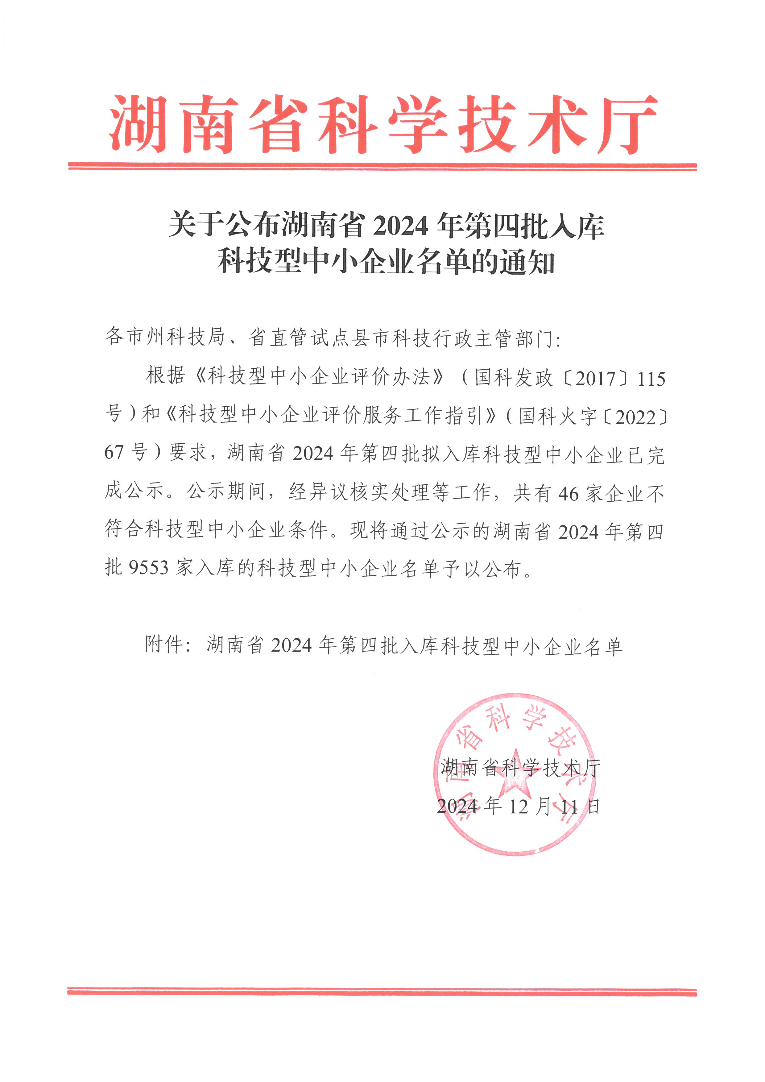 湖南省2024年第4批入庫科技型中小企業名單公告正文.jpg PICTURE