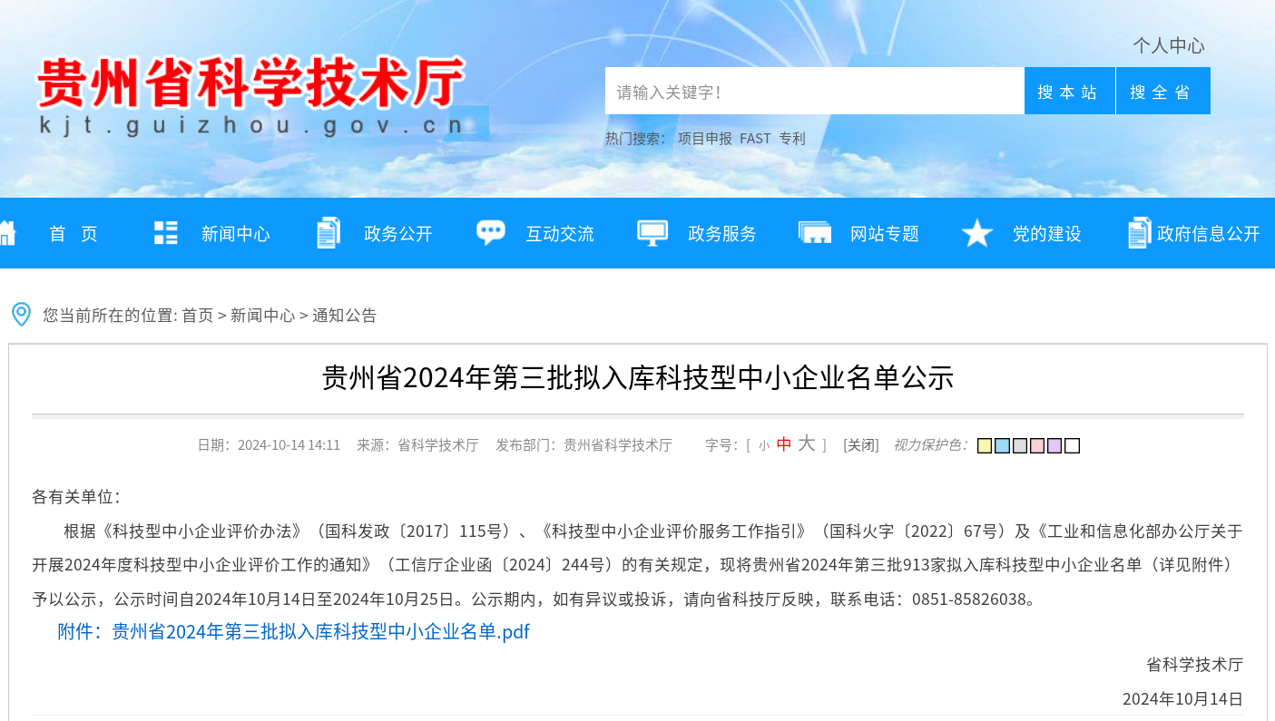 貴州省2024年第3批擬入庫(kù)科技型中小企業(yè)名單公示正文.jpg PICTURE