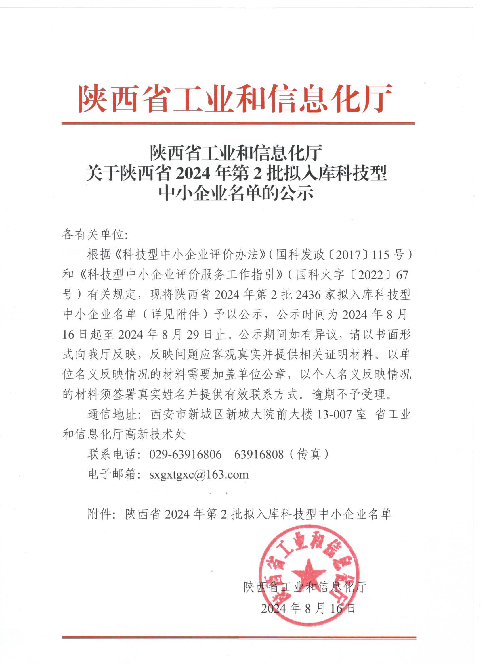 關于陜西省2024年第2批擬入庫科技型中小企業名單的公示.jpg PICTURE
