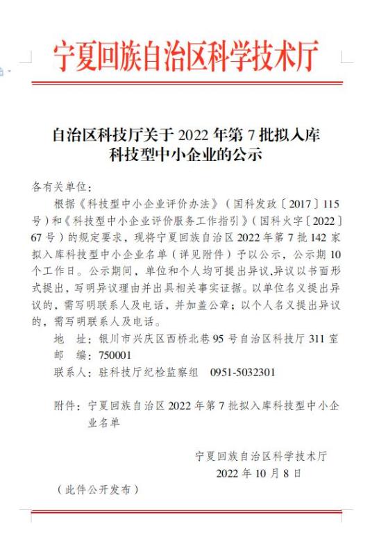 寧夏回族自治區2022年第7批擬入庫科技型中小企業名單公示正文.jpg PICTURE