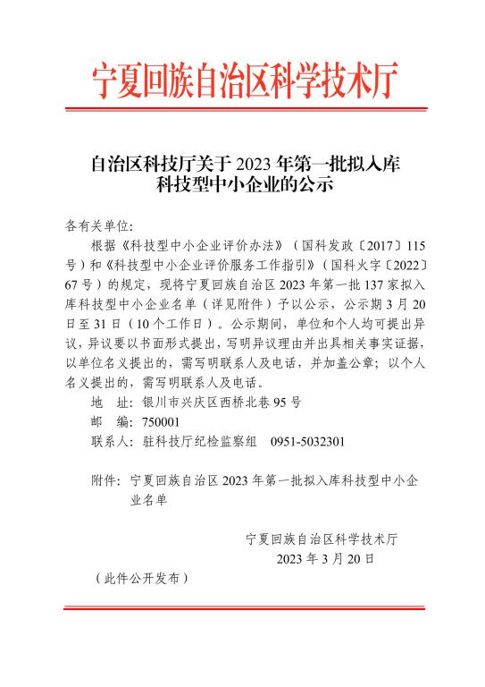 寧夏回族自治區2023年第1批擬入庫科技型中小企業名單公示正文.jpg PICTURE