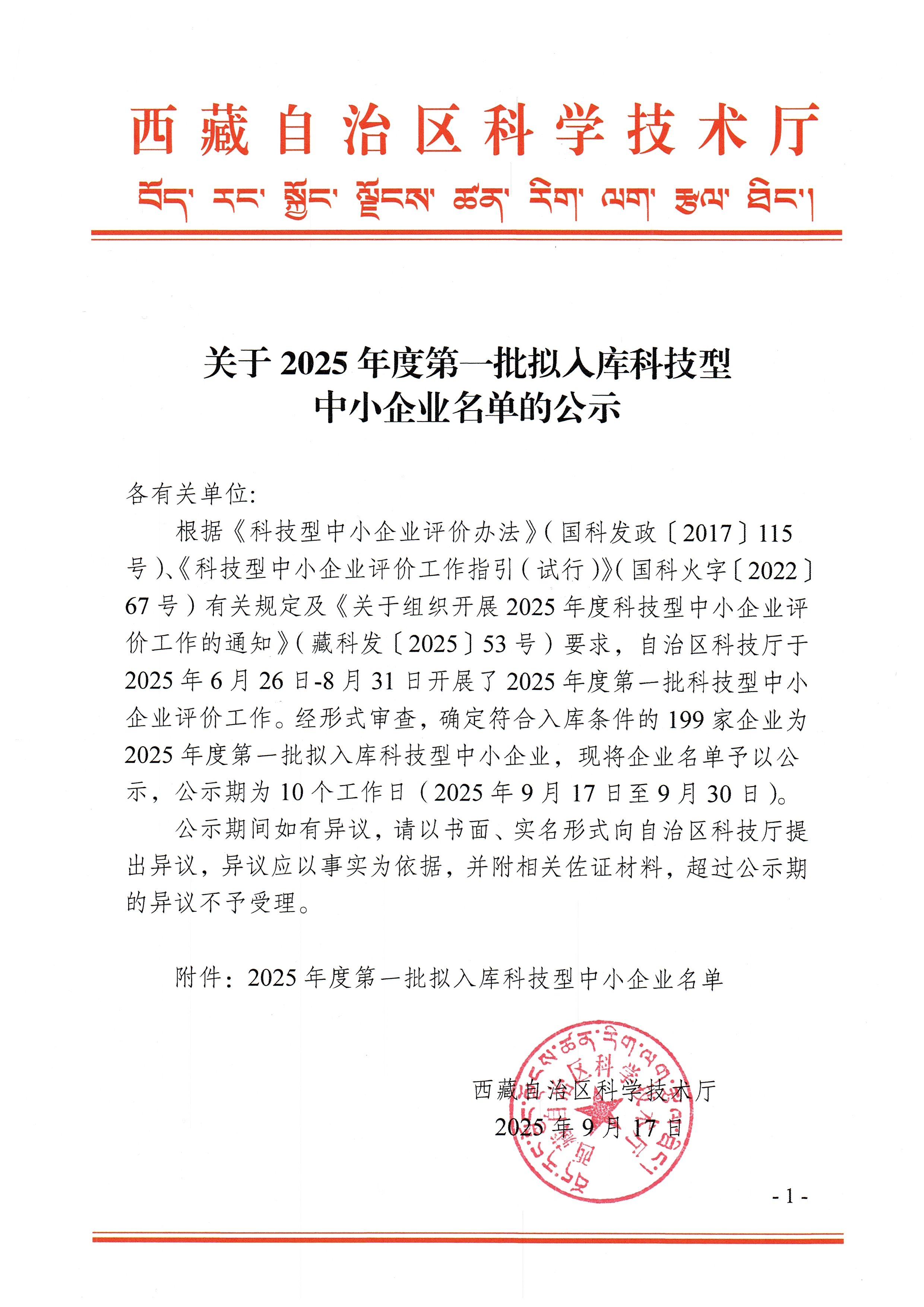 西藏自治區2025年第1批擬入庫科技型中小企業名單公示正文.jpg PICTURE