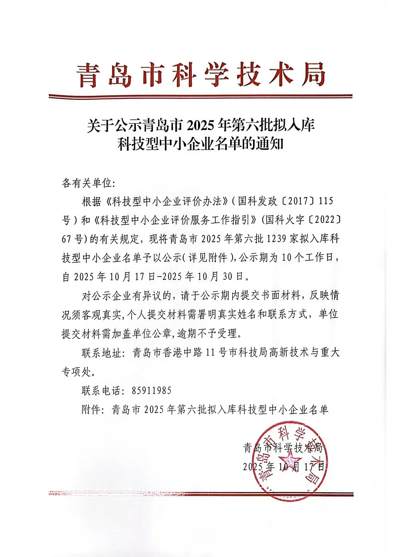 青島市2025年第6批擬入庫科技型中小企業名單公示正文.jpg PICTURE