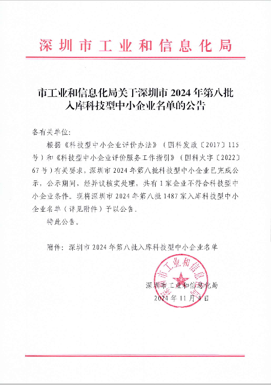 深圳市2024年第8批入庫科技型中小企業名單公告正文.jpg PICTURE