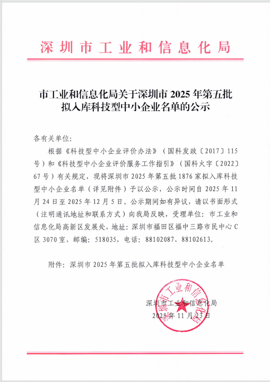深圳市2025年第5批擬入庫科技型中小企業名單公示正文.jpg PICTURE