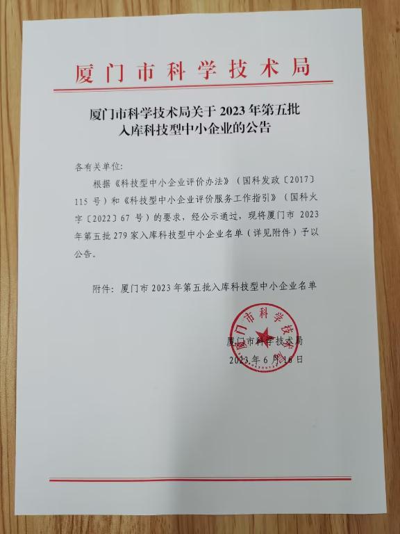 廈門市2023年第5批入庫科技型中小企業名單公告正文.jpg PICTURE