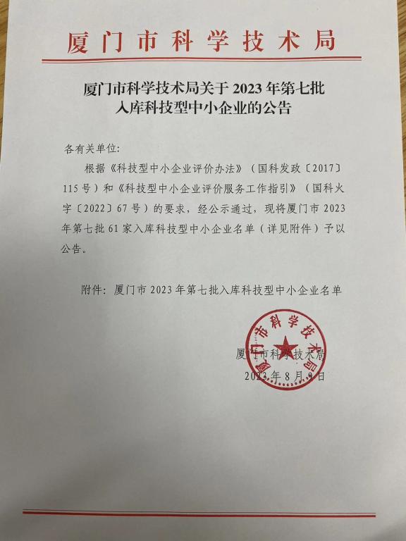 廈門市2023年第7批入庫科技型中小企業(yè)名單公告
